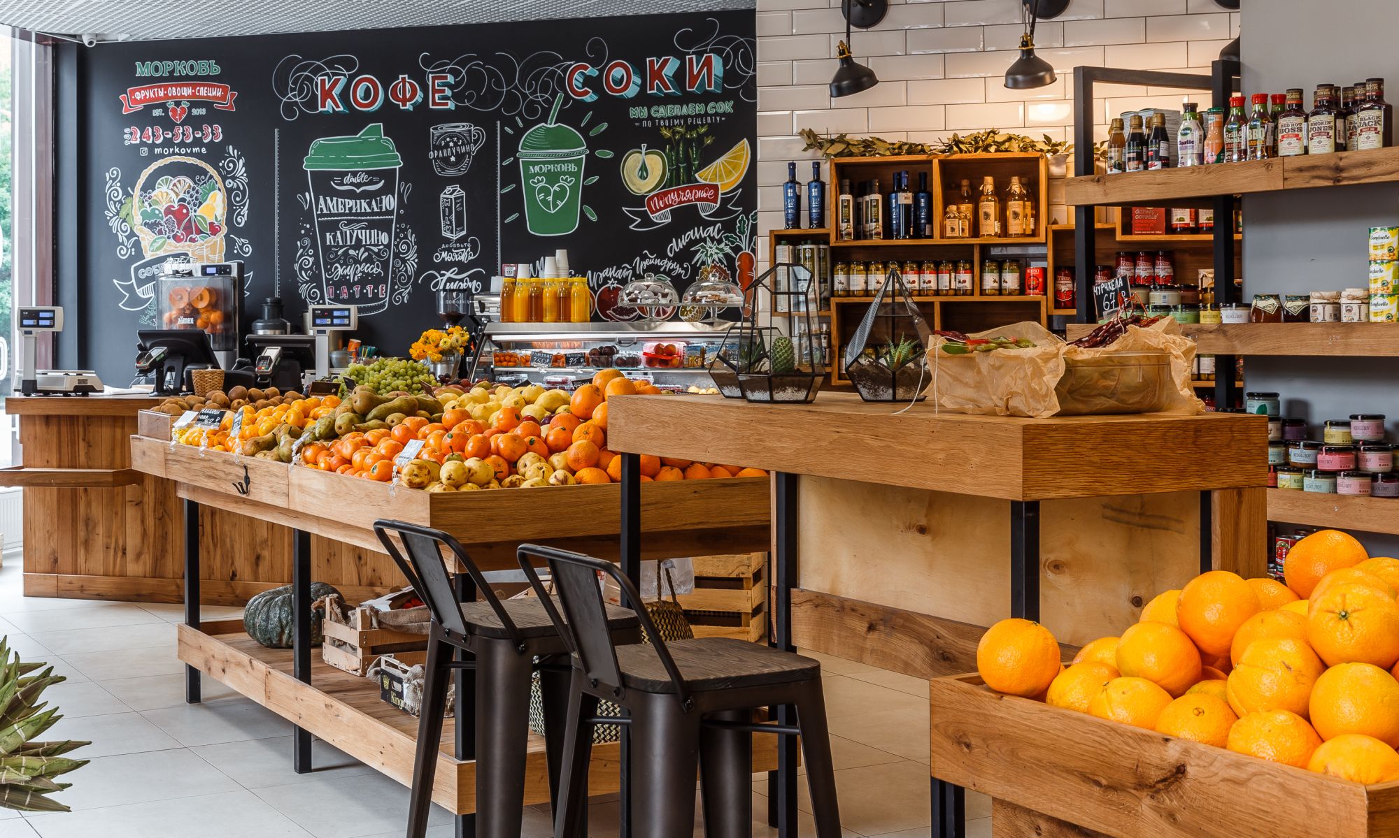 Современный магазин Овощи-Фрукты для жителей престижного района города Краснодар. Рабочее место кассира построено на базе сенсорного терминала Posiflex с кассой АТОЛ 55Ф, весами Штрих-Слим, сканером Honeywell и программным обеспечением Frontol Simple. Товарный учёт для удобного оформления приходов/списаний, а также для проведения инвентаризаций — на отдельном ноутбуке с Frontol Trade